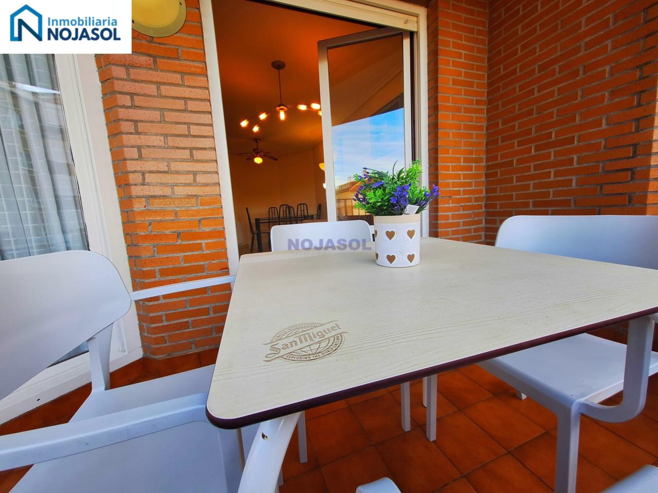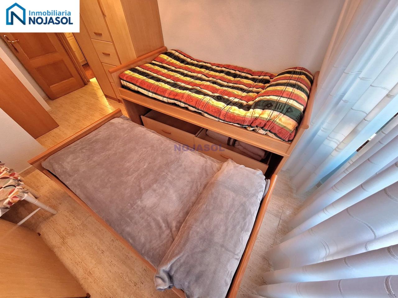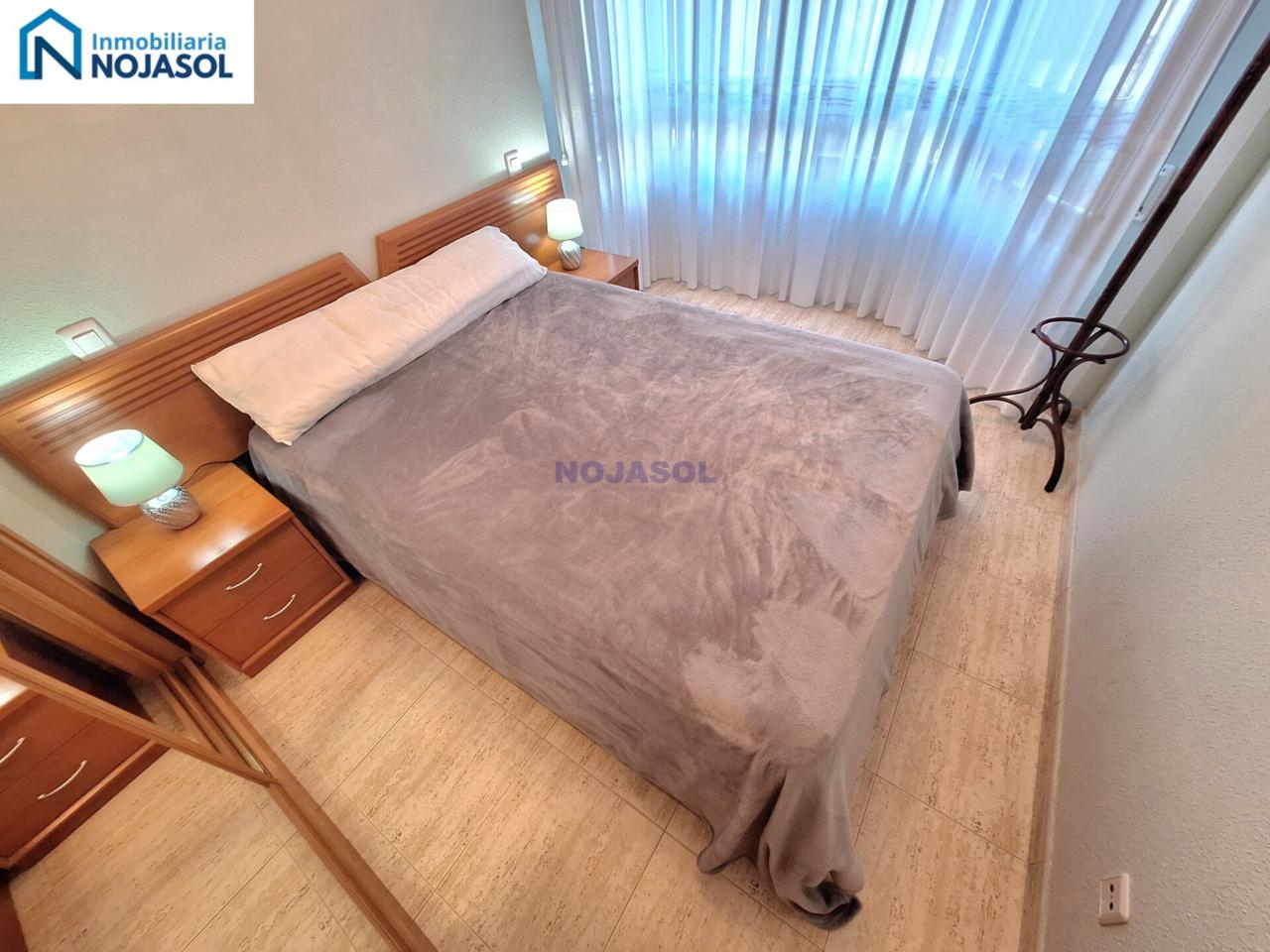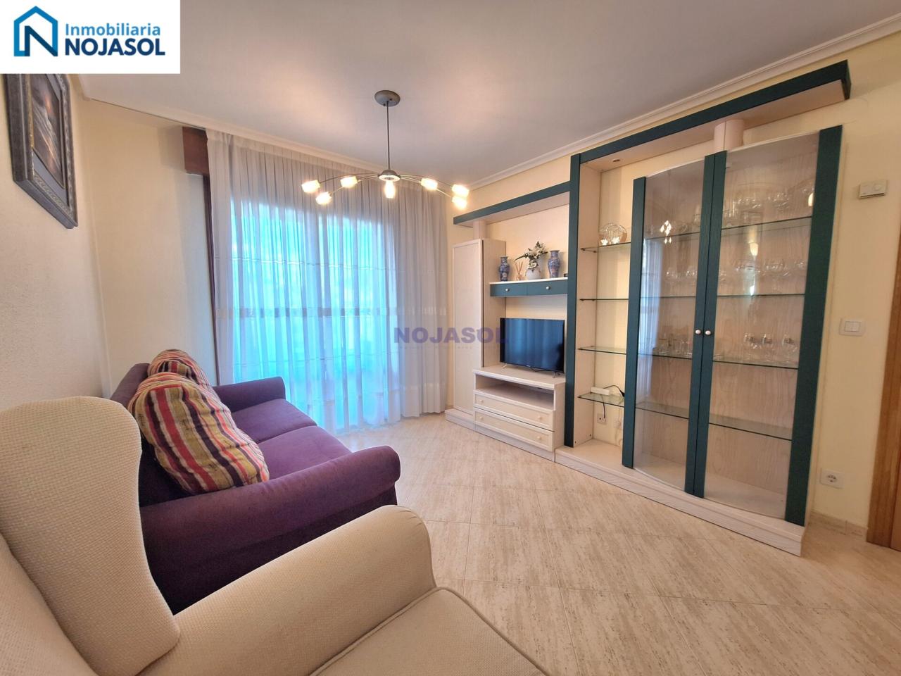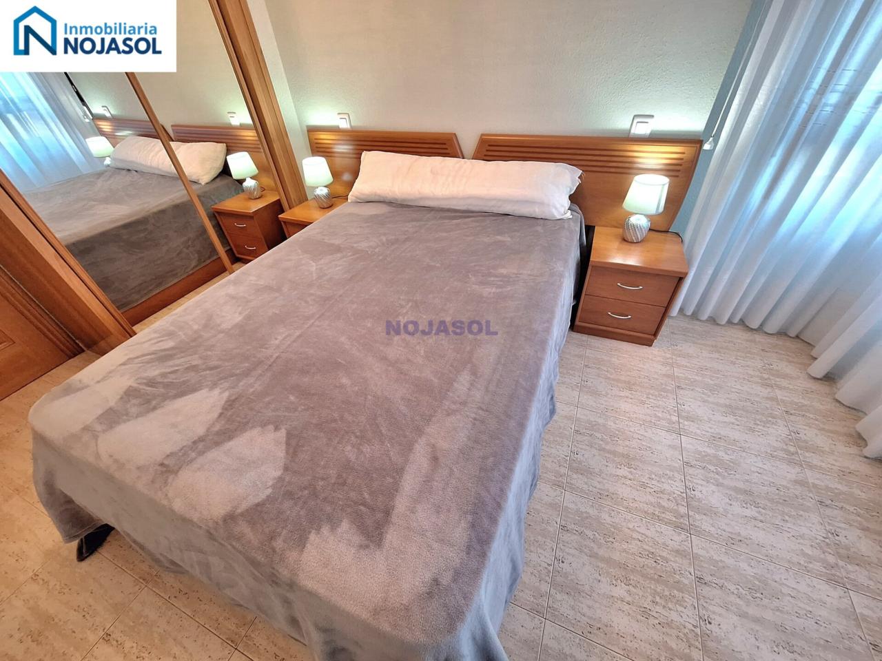 Bonito piso de dos habitaciones con terraza. El inmueble cuenta con una cocina independiente (con microondas, horno, cafetera italiana, exprimidor de zuma natural...). La nevera es mas pequeña que las normales (debajo de un mueble blanco) y tiene un congelador de la misma altura (con lo cual, cada uno tiene su espacio y prácticamente hace la función de una nevera normal). No tiene lavavajillas.