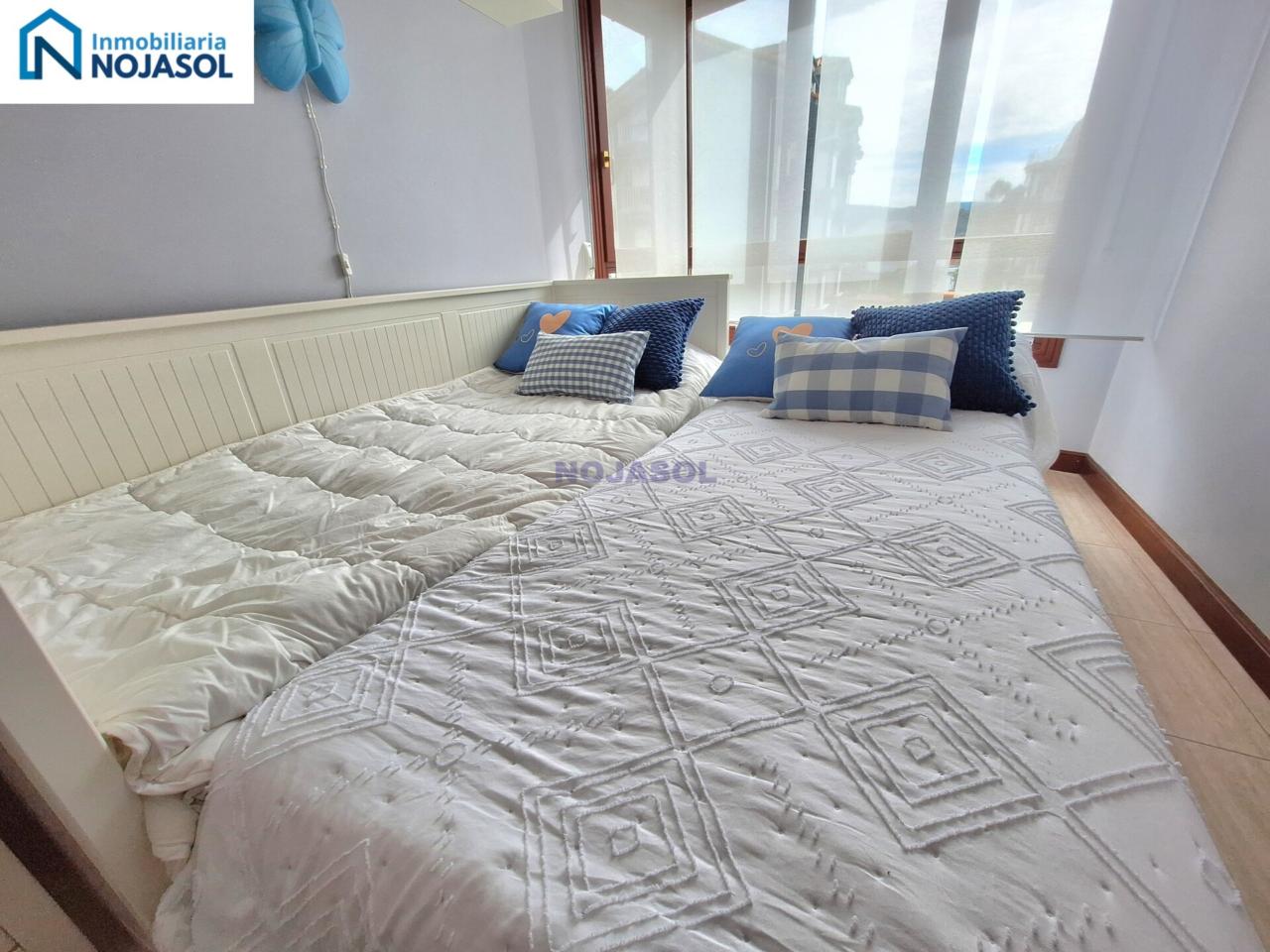 El inmueble cuenta con dos dormitorios; uno de ellos con una cama de matrimonio (1,40) con un gran ventanal con mucha luz . Acompañado a su vez de un baño completo incluido en la habitación con bañera . El otro dormitorio cuenta dos camas individuales tipo nido (0,80) y unos grandes ventanales que nos permite entrar mucha luz. Deja sábanas y toallas.