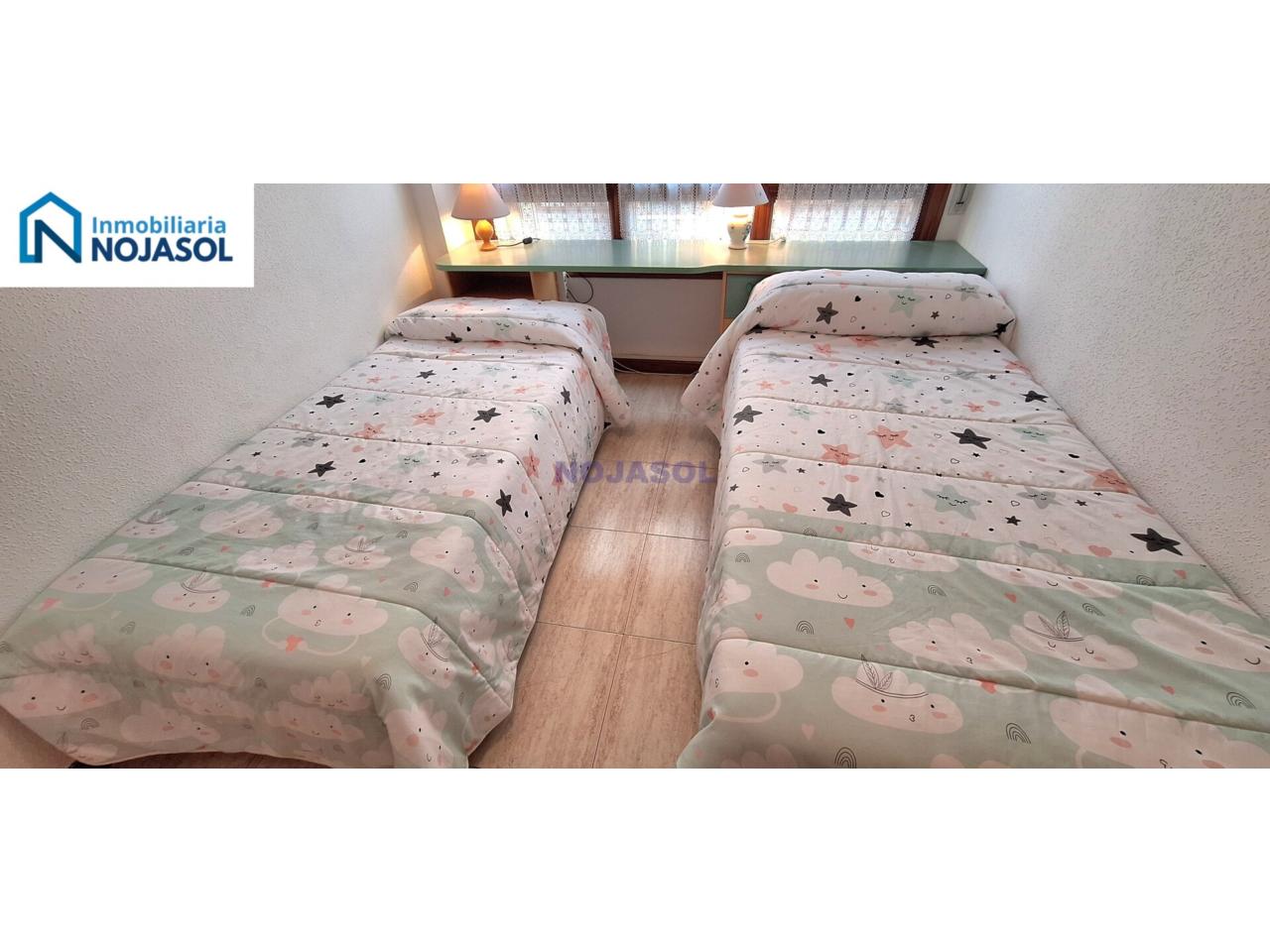 Cuenta con 3 dormitorios, dos de ellos tienen cama de matrimonio (1,35) y la otra tiene dos camas individuales (0,90). Dos baños completos uno con bañera y el otro con plato de ducha. Deja sabanas (toallas no)