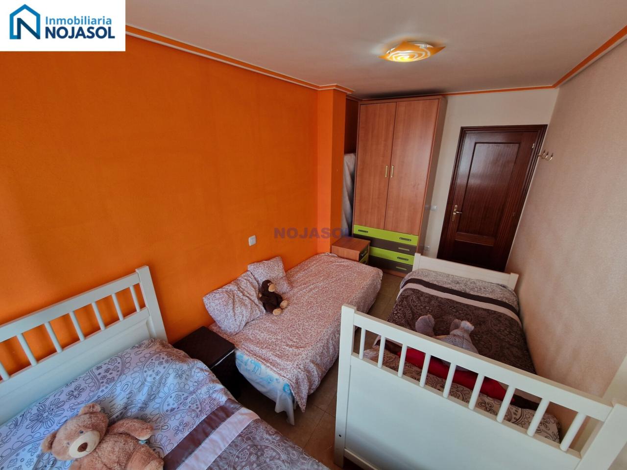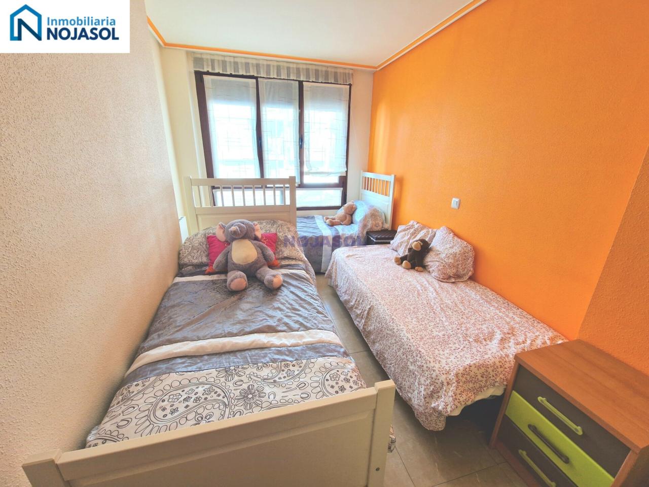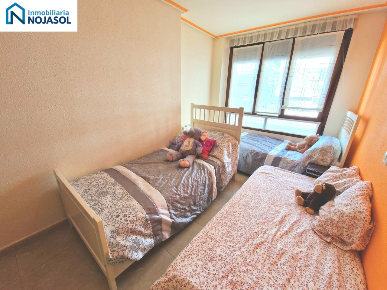 La habitación secundaria también es amplia y luminosa, equipada con un armario y actualmente dispone de tres camas de 90, lo que demuestra su gran tamaño y versatilidad: ideal para niños, invitados o incluso como espacio de trabajo.