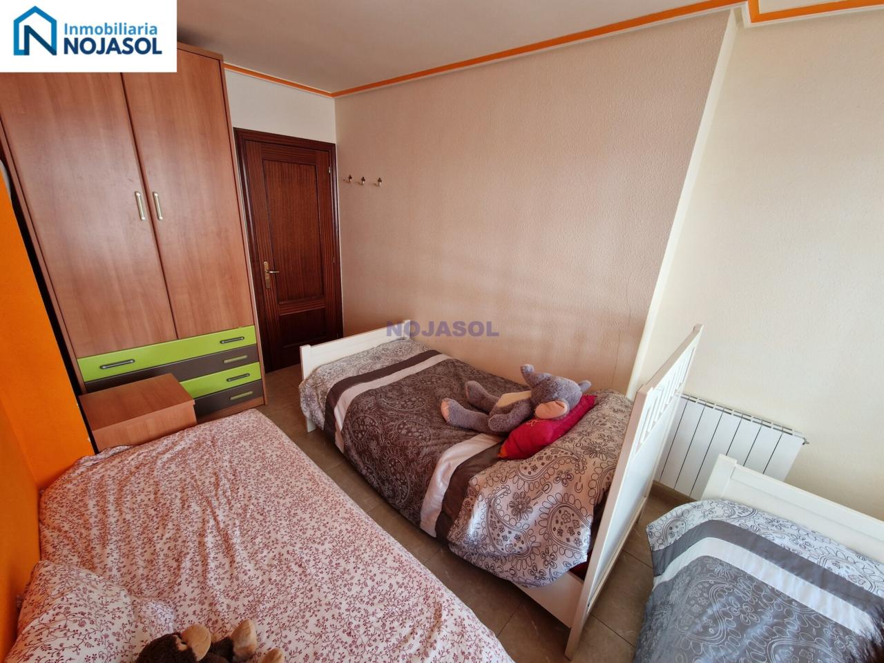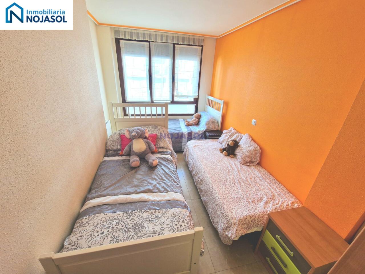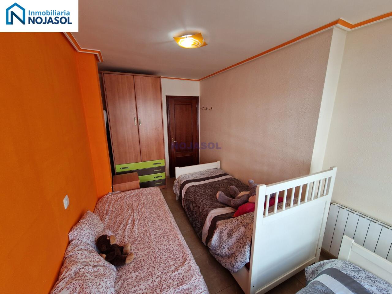 La habitación secundaria también es amplia y luminosa, equipada con un armario y actualmente dispone de tres camas de 90, lo que demuestra su gran tamaño y versatilidad: ideal para niños, invitados o incluso como espacio de trabajo.