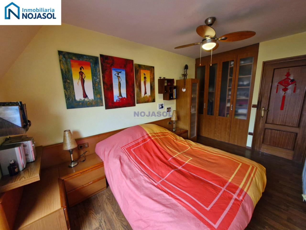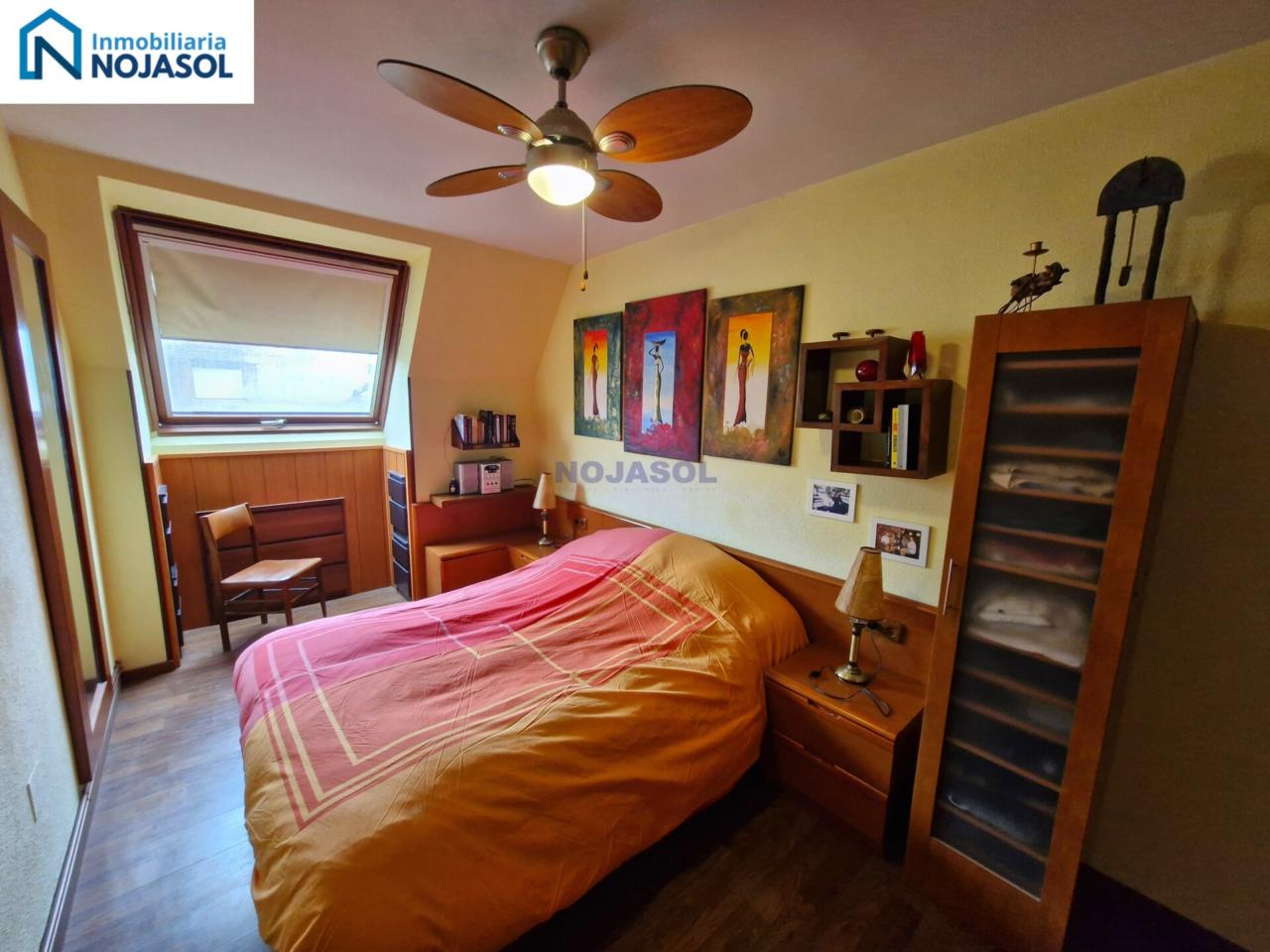 La habitación principal es amplia, luminosa y soleada, tiene zona de descanso y zona de armario de varios cuerpos.