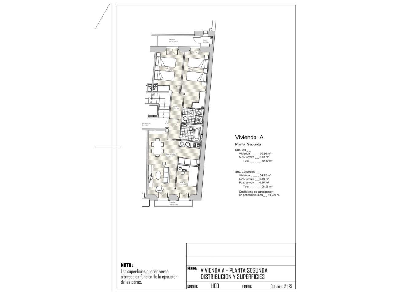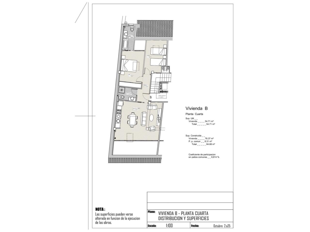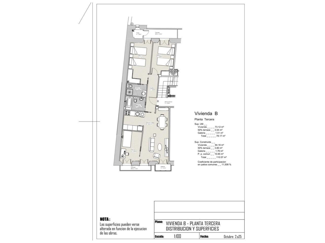 Nota: Las recreaciones artísticas y las superficies expresadas en este escrito son meramente informativas, no constituyendo documento contractual, pudiendo experimentar modificaciones por razones de índole técnica en el desarrollo de la ejecución de las obras. La vivienda se entrega sin el mobiliario representado.