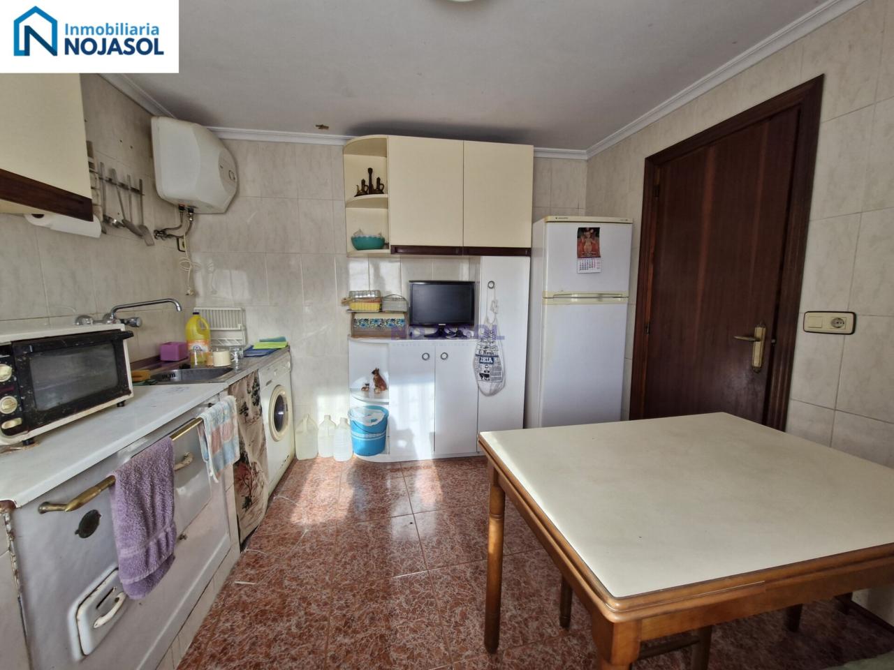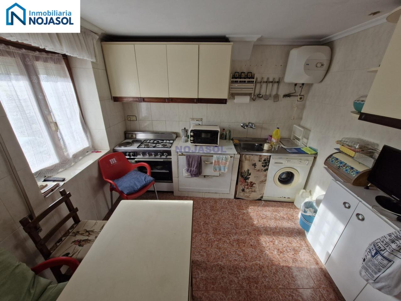 En planta calle dispone de una zona de terraza con bonitas vistas y muy soleada, hall de entrada muy amplio que actualmente hace las veces de comedor, cocina muy cuadrada, baño completo exterior, y dos habitaciones.