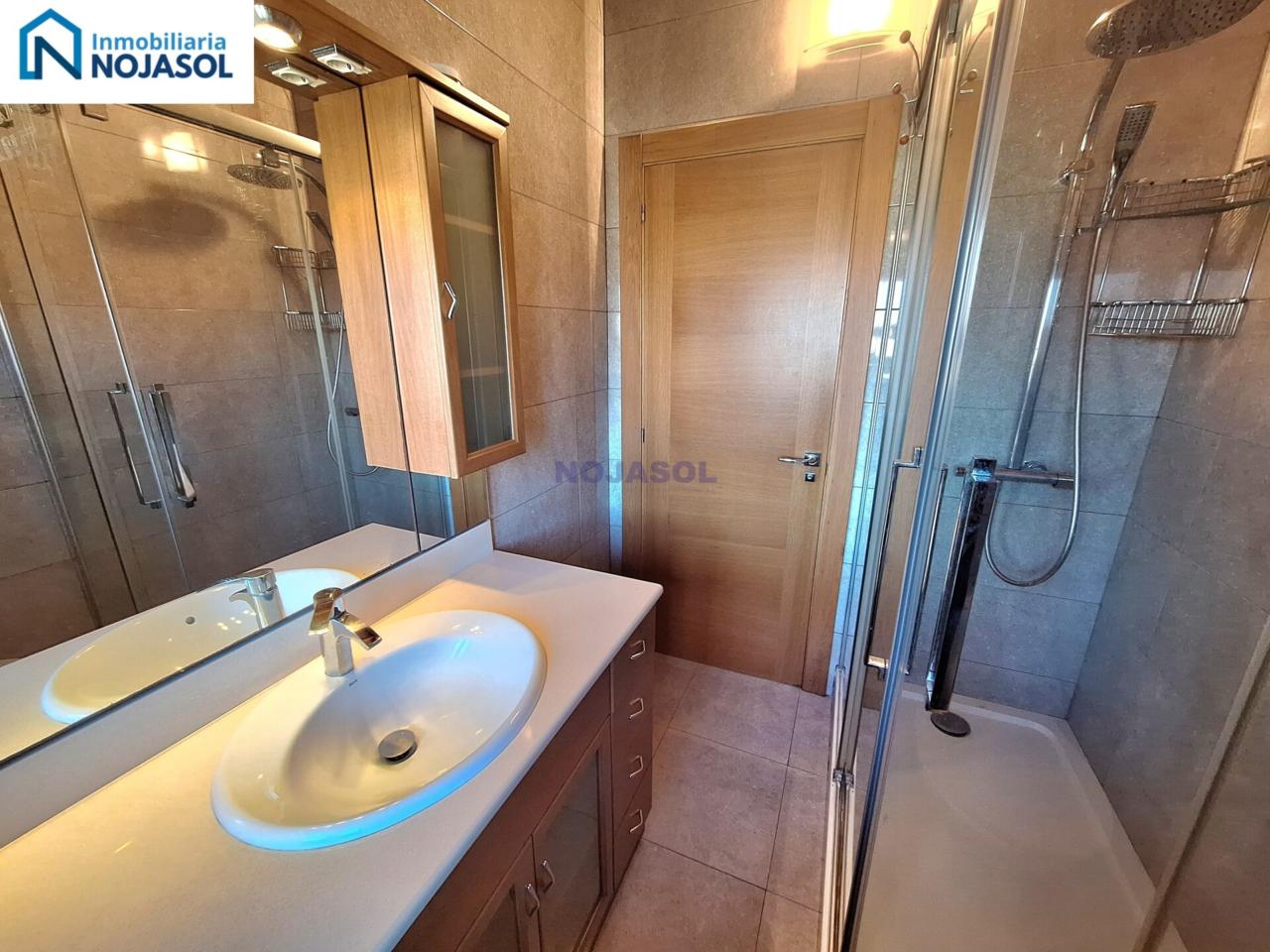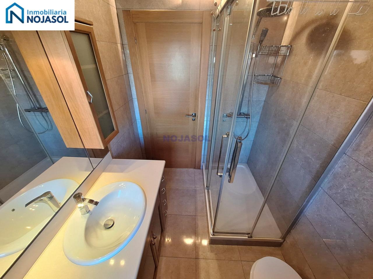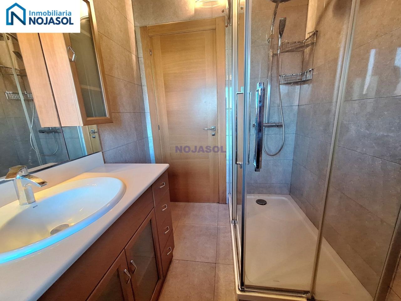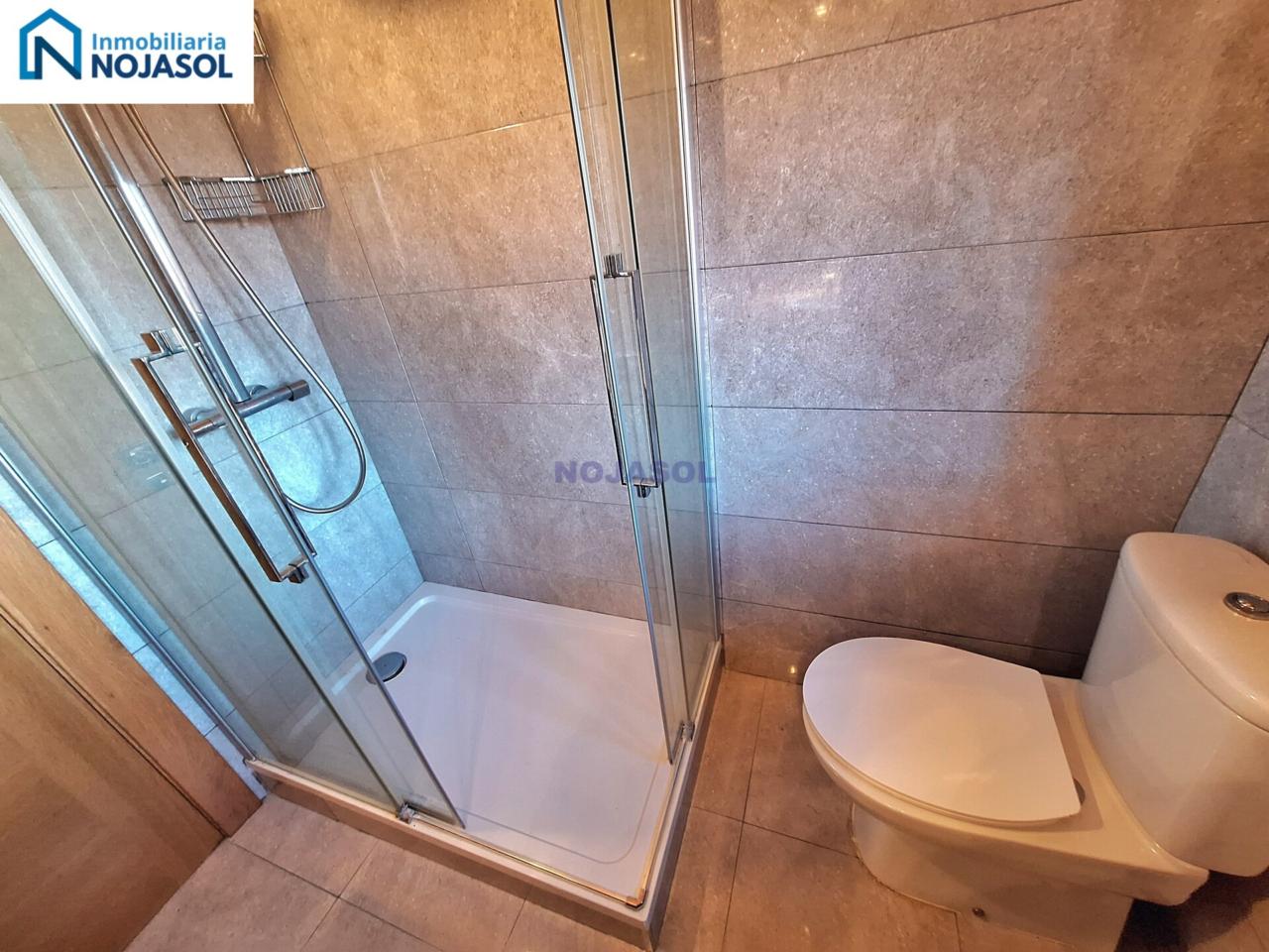 Un baño completo con plato de ducha, con un armario bajo el lavabo para guardar las cosas de higiene. Y tiene una ventana que hace mucho mas fácil su ventilación.