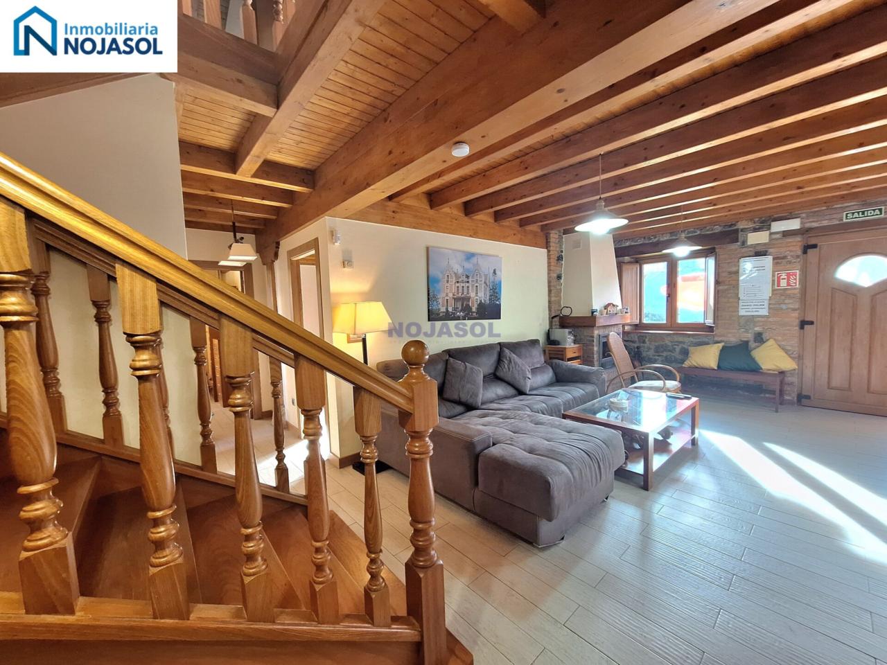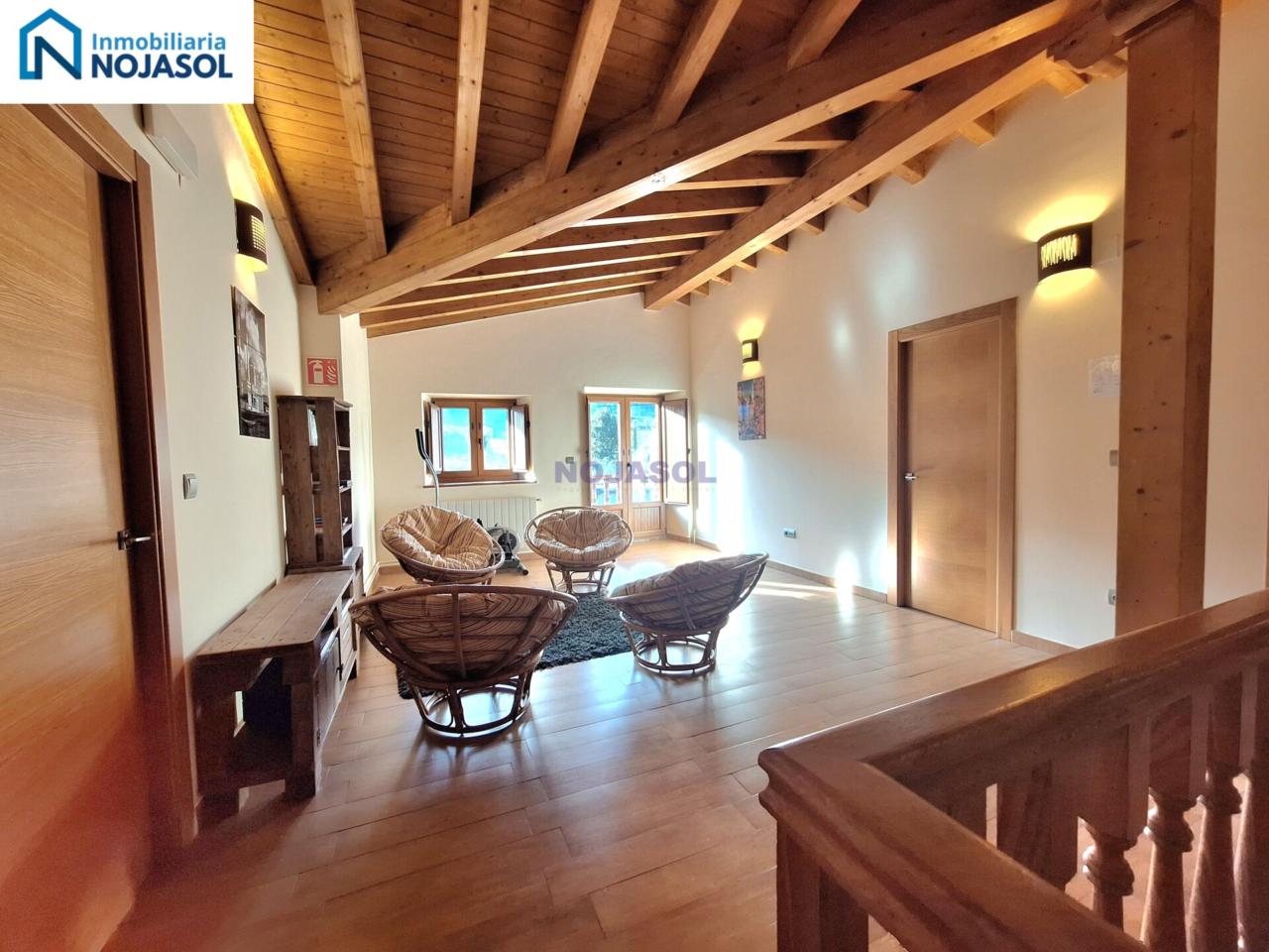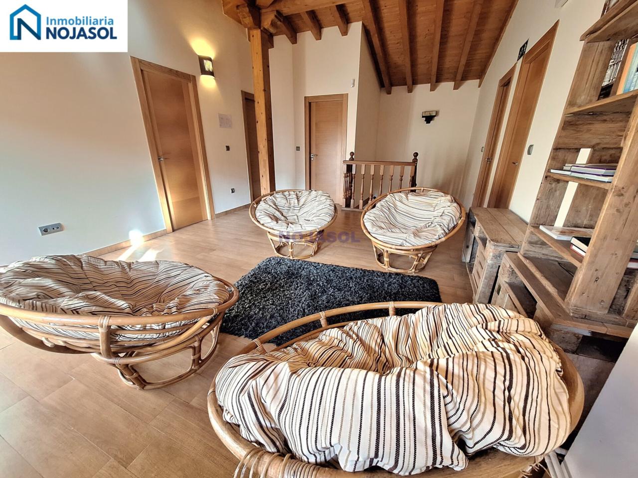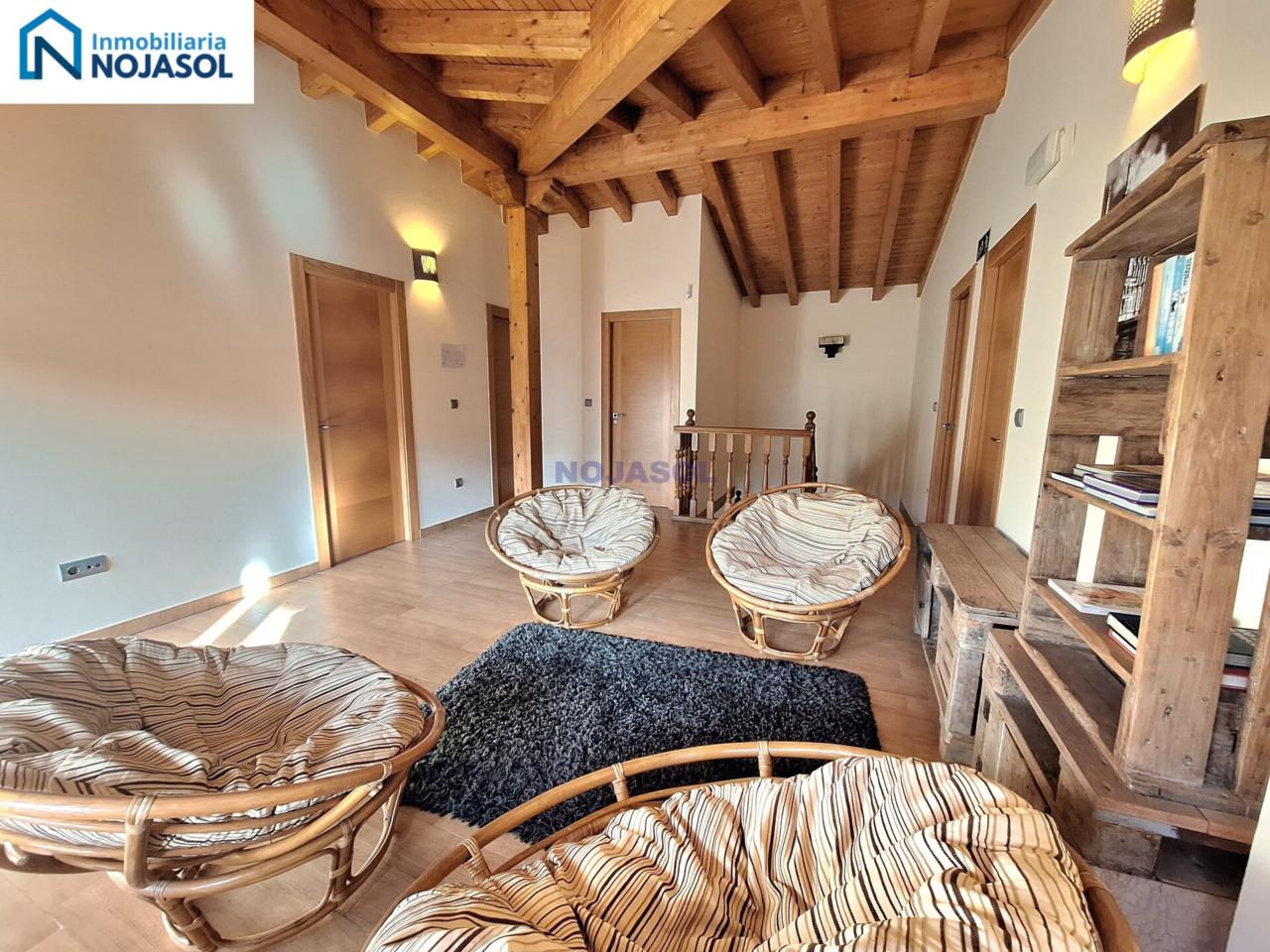 En la primera planta tenemos un amplio hall al subir las escaleras con sofás y mesa con sillas para pasar un buen rato en familia. Con salida a una bonita terraza orientada al Sur y con unas bonitas vistas despejadas.