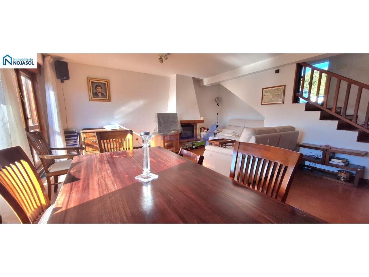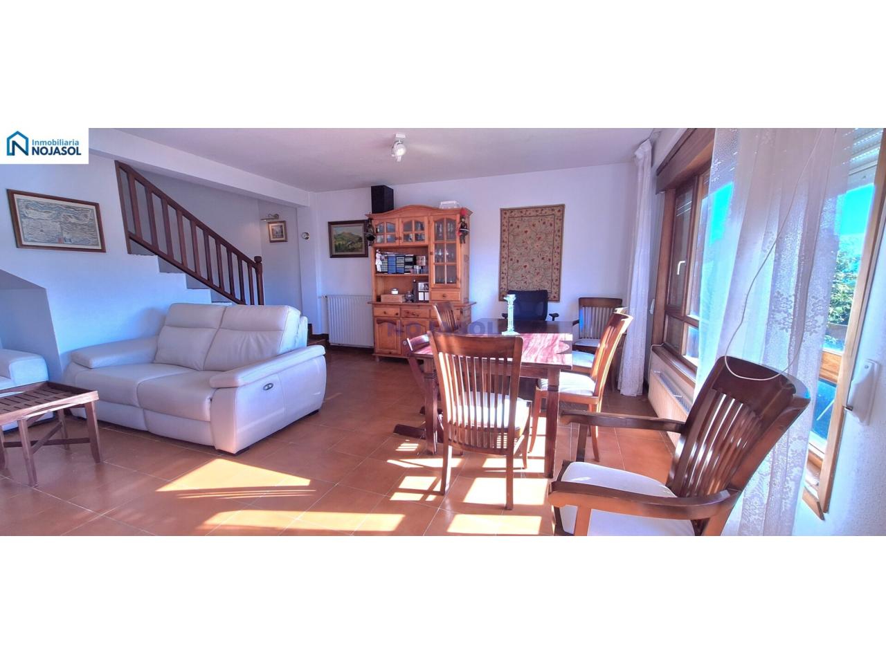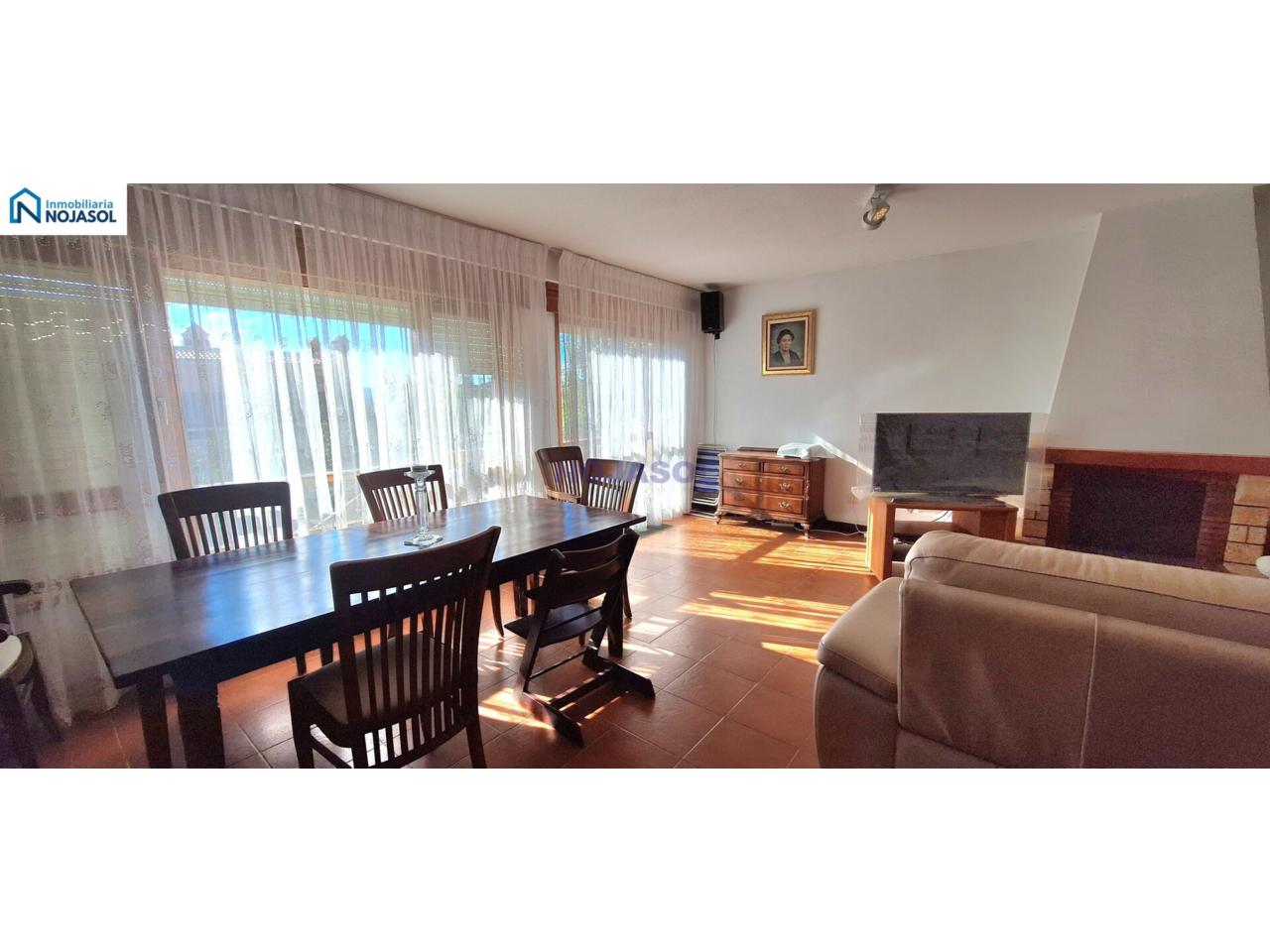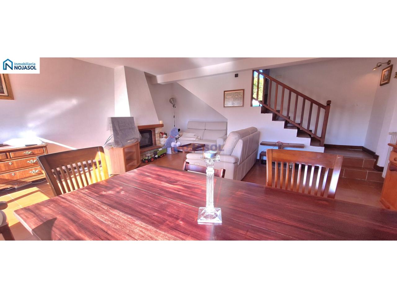 En esta misma planta bajamos unas escaleras y nos encontramos con un amplio y luminoso salón con una chimenea para esos dias de invierno que hace que la estancia sea mucho mas acogedora. Desde el salón tenemos acceso a un bonito jardín de unos 80 m2.