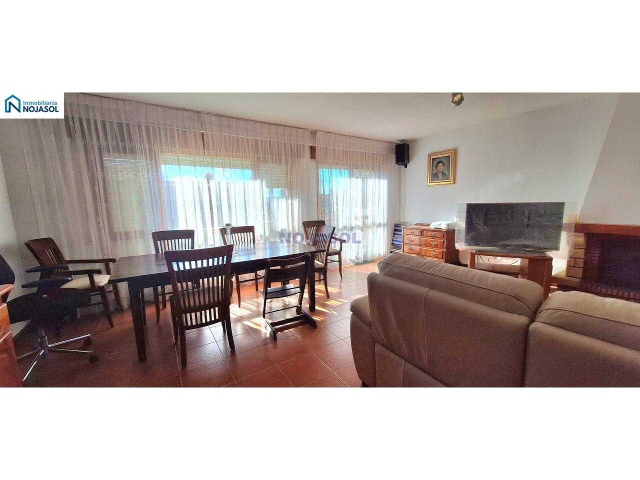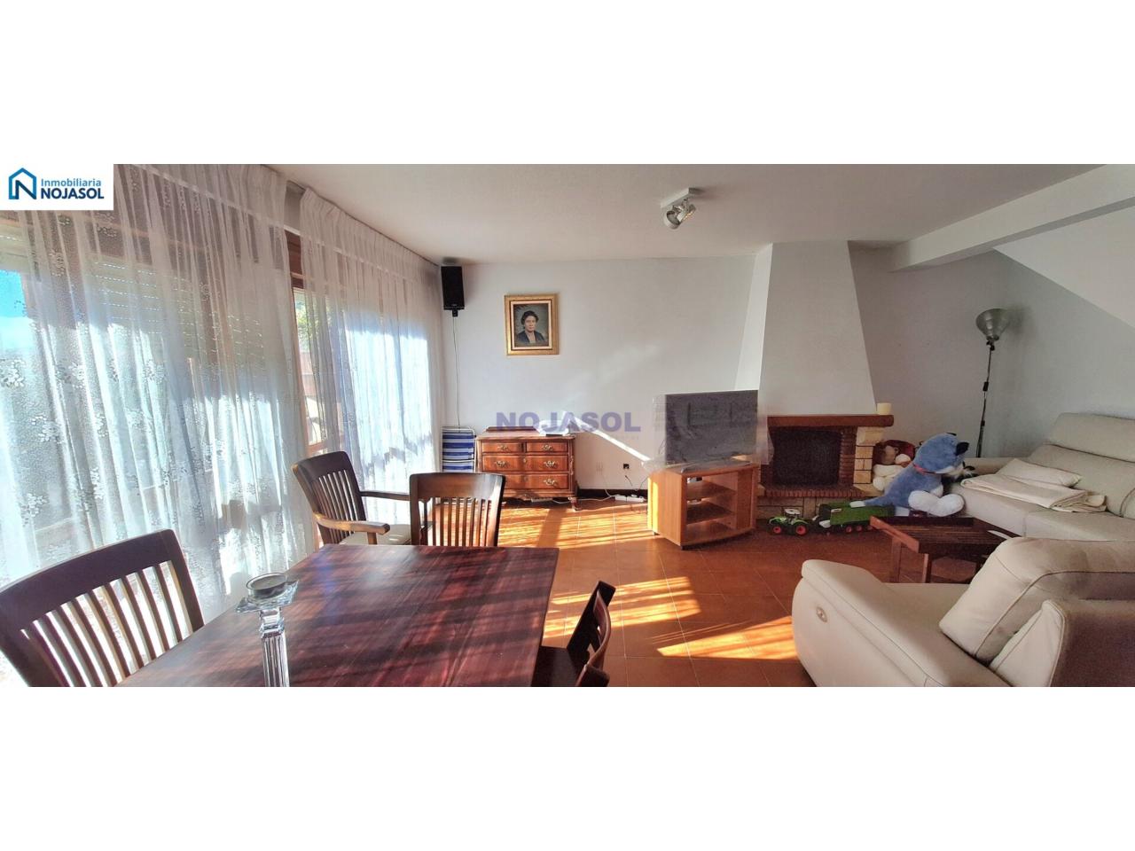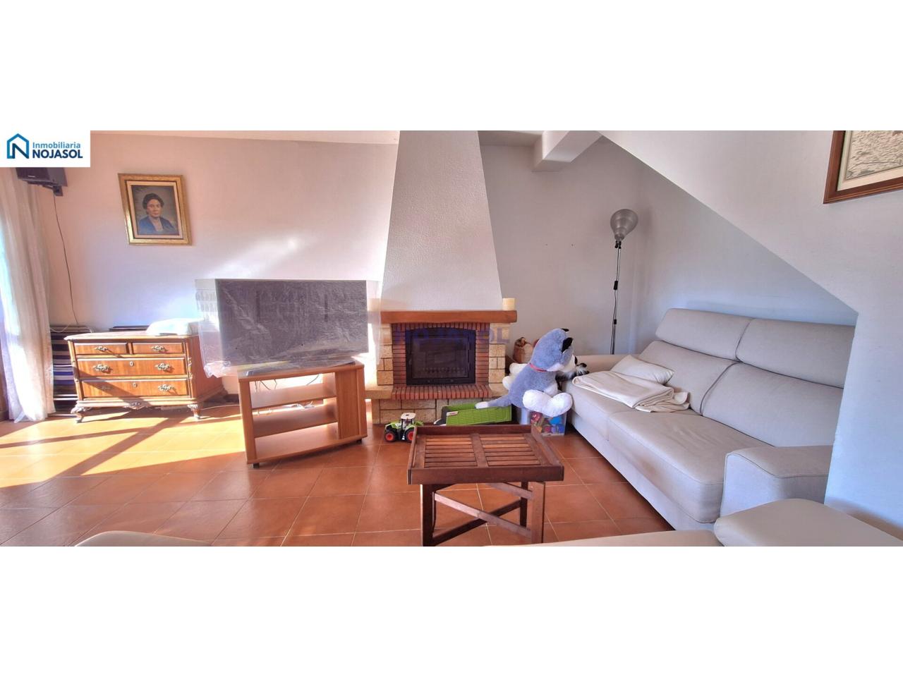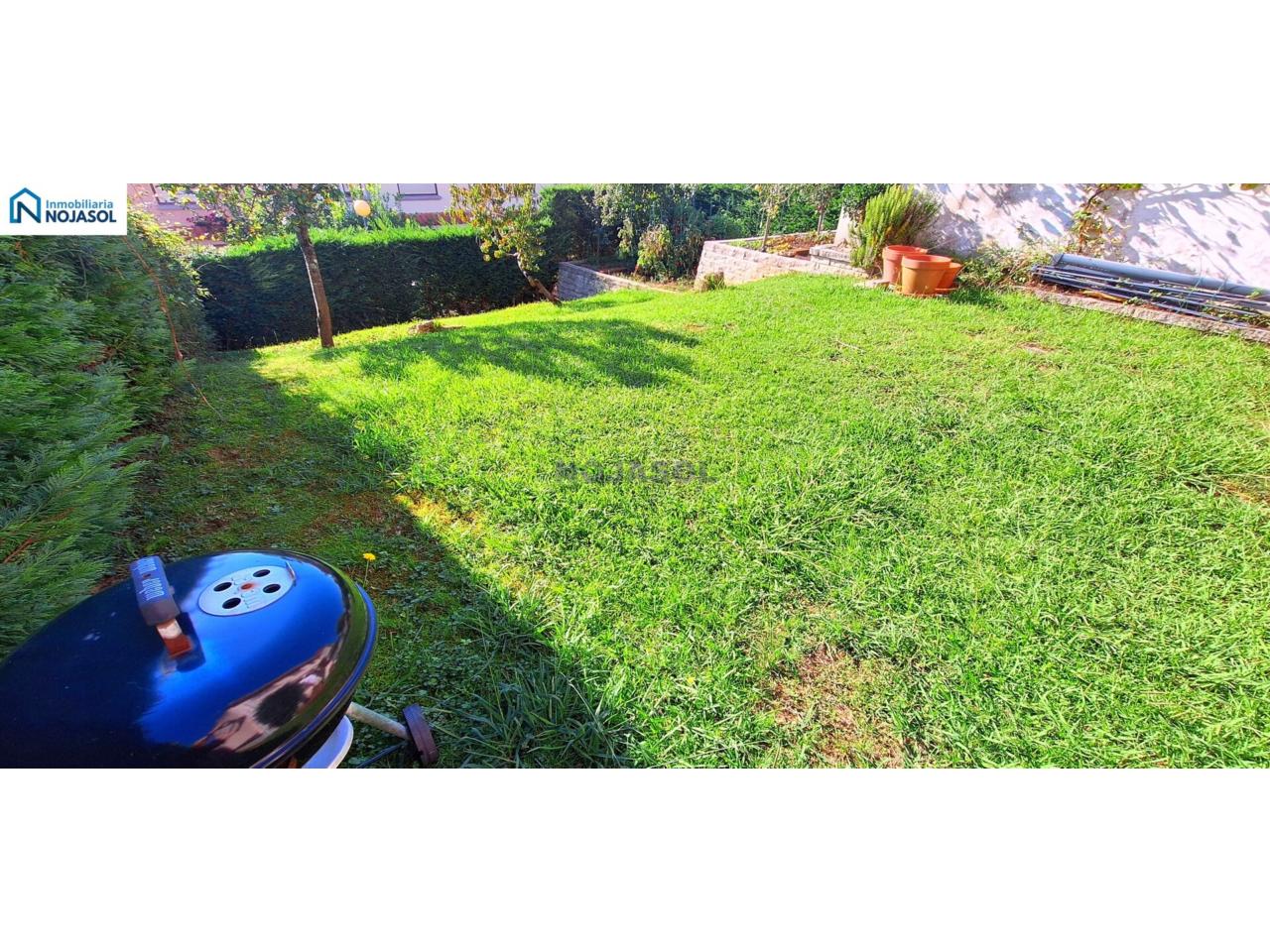 En esta misma planta bajamos unas escaleras y nos encontramos con un amplio y luminoso salón con una chimenea para esos dias de invierno que hace que la estancia sea mucho mas acogedora. Desde el salón tenemos acceso a un bonito jardín de unos 80 m2.